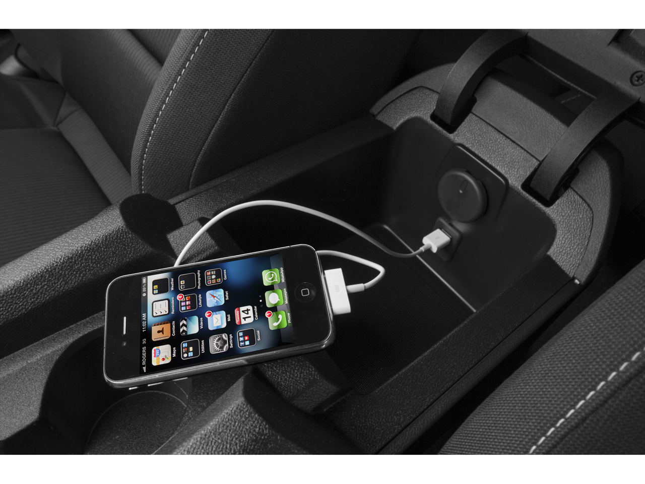 - Audio system feature, USB port, located in center console