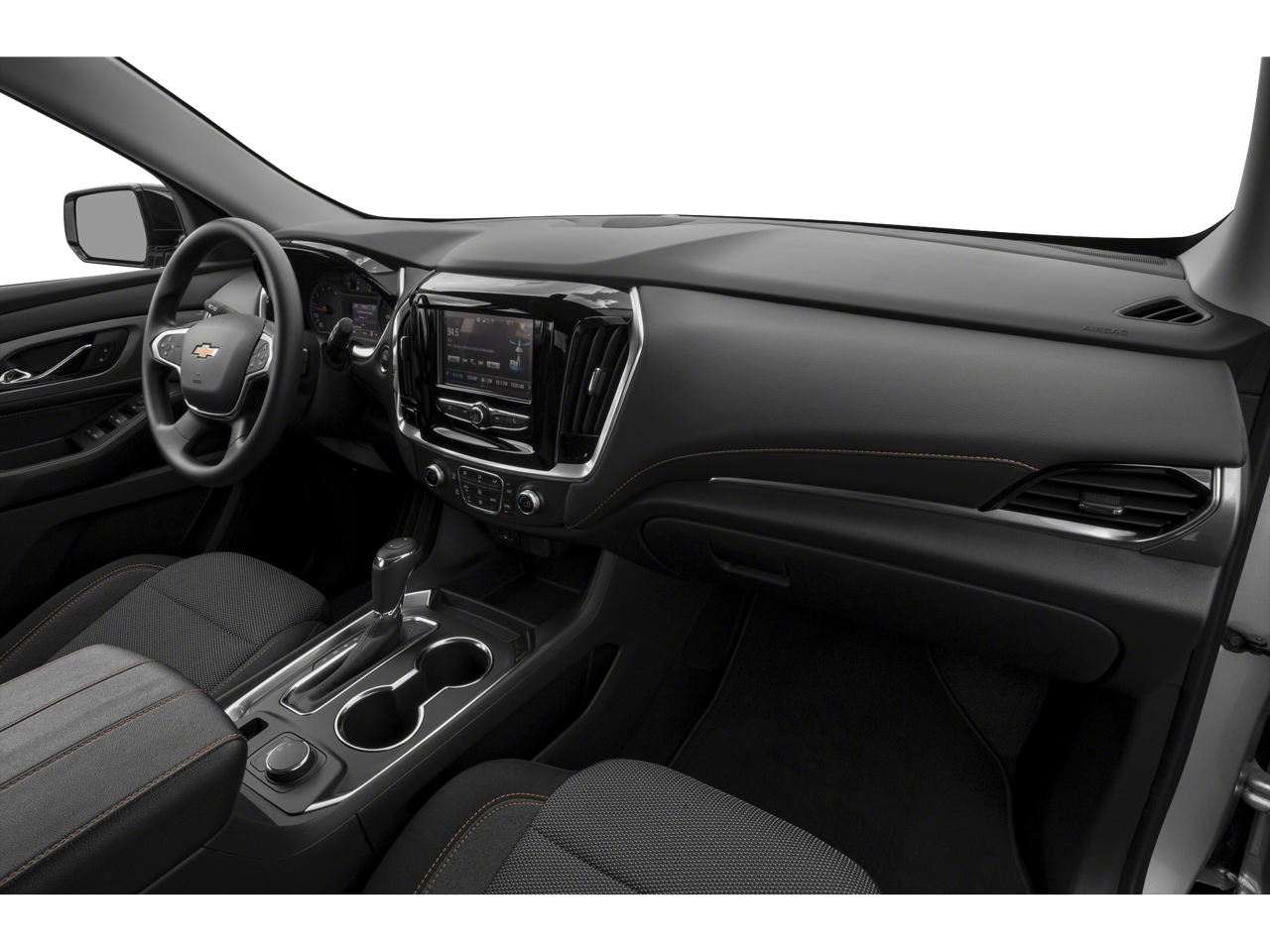 Vaden is pleased to offer this Mosaic Black Metallic 2019 Chevrolet Traverse LS with Jet Black Cloth... Beautifully equipped with Preferred Equipment Group 1LS, 3.49 Axle Ratio, 3rd row seats: split-bench, 4-Wheel Disc Brakes, 6 Speakers, 8-Passenger Seating (2-3-3 Seating Configuration), ABS brakes, Air Conditioning, Alloy wheels, AM/FM radio, Apple CarPlay/Android Auto, Automatic temperature control, Brake assist, Bumpers: body-color, Compass, Delay-off headlights, Driver door bin, Driver vanity mirror, Dual front impact airbags, Dual front side impact airbags, Electronic Stability Control, Emergency communication system, Four wheel independent suspension, Front anti-roll bar, Front Bucket Seats, Front Center Armrest, Front dual zone A/C, Front reading lights, Fully automatic headlights, Heated door mirrors, High-Intensity Discharge Headlights, Illuminated entry, Low tire pressure warning, Occupant sensing airbag, Outside temperature display, Overhead airbag, Overhead console, Panic alarm, Passenger door bin, Passenger vanity mirror, Power door mirrors, Power steering, Power windows, Premium Cloth Seat Trim, Radio data system, Radio: Chevrolet Infotainment System AM/FM Stereo, Rear air conditioning, Rear anti-roll bar, Rear reading lights, Rear window defroster, Rear window wiper, Remote keyless entry, Security system, Speed control, Speed-sensing steering, Split folding rear seat, Spoiler, Steering wheel mounted audio controls, Tachometer, Telescoping steering wheel, Tilt steering wheel, Traction control, Trip computer, Variably intermittent wipers, Voltmeter, and Wheels: 18" Bright Silver Painted Aluminum!