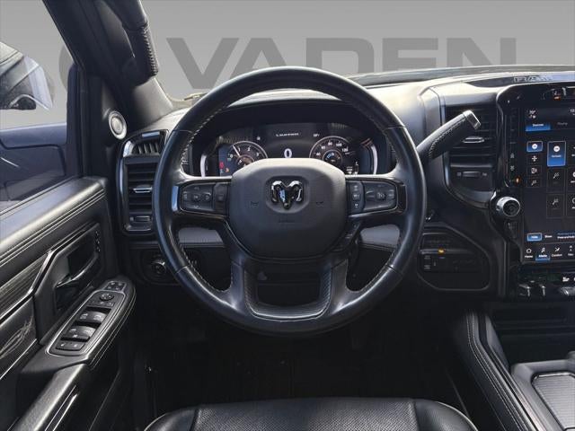 Quick Order Package 2HM Limited. Limited Level 1 Equipment Group: Google Android Auto; Center Stop Lamp with Cargo View Camera; Surround View Camera System; For Details. Visit DriveUconnect.com; Integrated Voice Command with Bluetooth®; LED Bed Lighting; Connectivity - US/Canada; Power Deployable Running Boards; 12" Touchscreen Display; GPS Navigation; 4G LTE Wi-Fi Hot Spot; RamBox Cargo Management System; Adaptive Steering System; GPS Antenna Input; SiriusXM with 360L; Global Telematics Box Module; Connected Travel and Traffic Services; Alexa Built-In; Trailer Reverse Guidance; Vendor Painted Cargo Box Tracking; Apple CarPlay; Off-Road Information Pages; Selectable Tire Fill Alert; Trailer Tow Pages; Disassociated Touchscreen Display; HD Radio; Ramcharger Wireless Charging Pad; Uconnect 5 Navigation with 12.0" Display Radio; 4 Adjustable Cargo Tie-Down Hooks; Full Speed Forward Collision Warning Plus; MOPAR Spray in Bedliner; 17 Speaker Harman/kardon Premium Sound; Truck Bed Cargo Divider; Adaptive Cruise Control with Stop; Digital Rearview Mirror; Lane Keep Assist. Auto Level Rear Air Suspension. Tri-Fold Tonneau Cover. 5th Wheel/gooseneck Towing Prep Group. Center Stop Lamp with Cargo View Camera. Adaptive Steering System. Granite Crystal Met CC. **Equipment listed is based on original vehicle build and subject to change. Please confirm the accuracy of the included equipment by calling the dealer prior to purchase.**