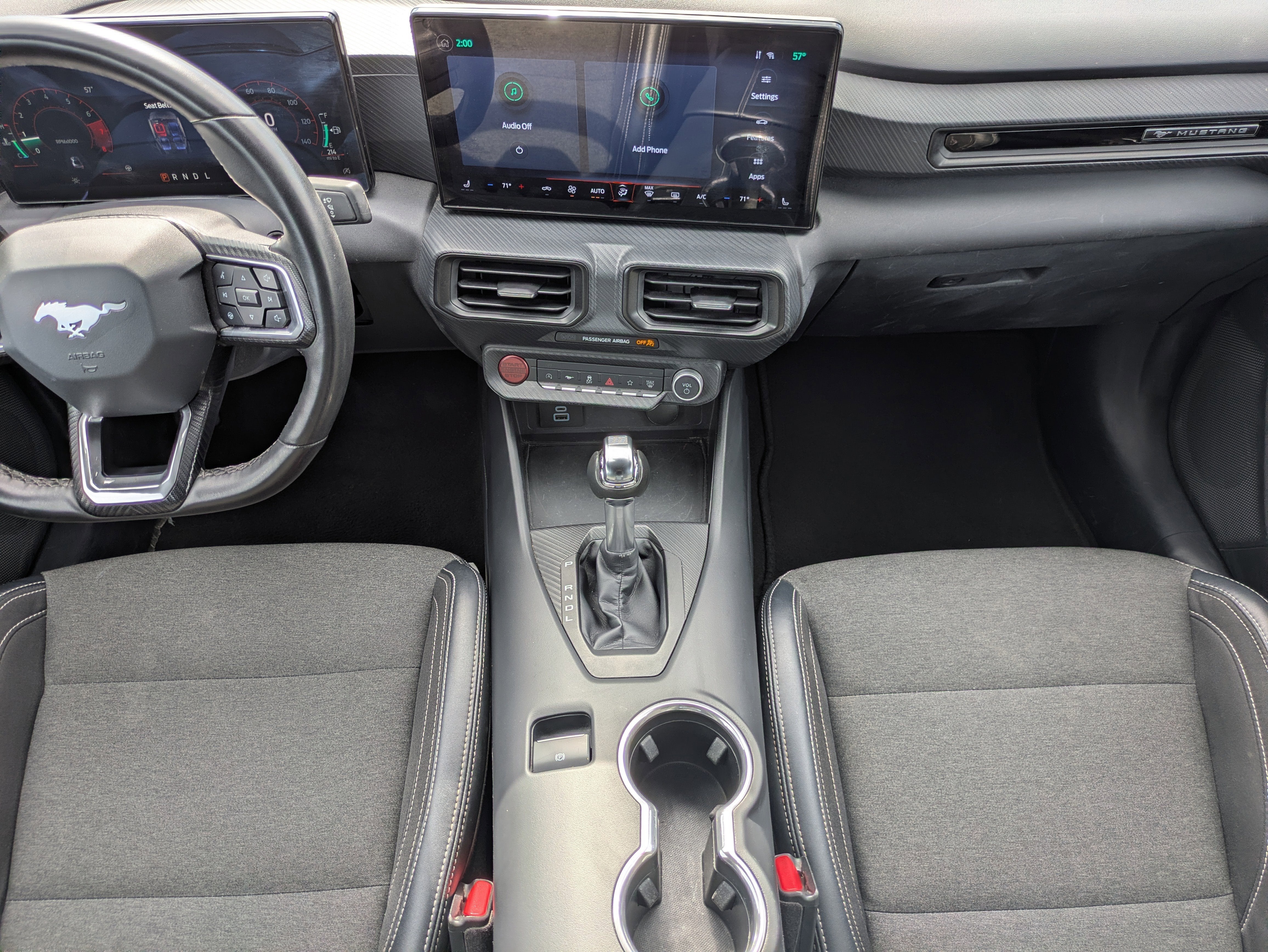 Vaden is pleased to offer this Shadow Black 2024 Ford Mustang EcoBoost with Black Onyx Cloth... Beautifully equipped with Equipment Group 101A High Package (9-Speaker Stereo System, Dual-Zone Electronic Automatic Temperature Control, and SiriusXM w/360L & HD Radio), 4-Wheel Disc Brakes, 9 Speakers, ABS brakes, Air Conditioning, Alloy wheels, AM/FM radio: SiriusXM with 360L, AM/FM Stereo, Auto High-beam Headlights, Automatic temperature control, Brake assist, Bumpers: body-color, Cloth/Vinyl Bucket Seats, Compass, Convertible roof lining, Delay-off headlights, Driver door bin, Driver vanity mirror, Dual front impact airbags, Dual front side impact airbags, Electronic Stability Control, Emergency communication system: 911 Assist, Exterior Parking Camera Rear, Four wheel independent suspension, Front anti-roll bar, Front Bucket Seats, Front Center Armrest, Front dual zone A/C, Front reading lights, Fully automatic headlights, Glass rear window, Heated front seats, Illuminated entry, Knee airbag, Leather Shift Knob, Low tire pressure warning, Occupant sensing airbag, Outside temperature display, Overhead console, Panic alarm, Passenger door bin, Passenger vanity mirror, Power convertible roof, Power door mirrors, Power driver seat, Power steering, Power windows, Radio data system, Rain sensing wipers, Rear anti-roll bar, Rear Parking Sensors, Rear window defroster, Remote keyless entry, Security system, Speed control, Speed-sensing steering, Speed-Sensitive Wipers, Sport steering wheel, Steering wheel mounted audio controls, SYNC 4.0 QNX, Tachometer, Telescoping steering wheel, Tilt steering wheel, Traction control, Trip computer, Variably intermittent wipers, Voltmeter, and Wheels: 18" x 8" Machined-Face Aluminum! Approved customer communicated additions (repairing minor cosmetic flaw, added accessories, etc.) Prior to delivery will be subject to additional charges. ***All of Our Vaden New Car Pricing is Transparent, the price you see is the price you pay!!**** CAR FAX 1 OWNER, Bluetooth®/HANDS FREE PHONE, CLEAN CARFAX, SIRIUS XM SATELLITE RADIO, POWER PACKAGE, PREMIUM WHEELS, SOUND PACKAGE - SIRIUS XM SATELLITE RADIO.